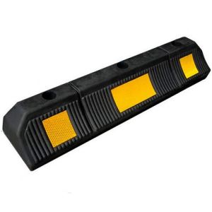 Колесовідбійник під колесо гумовий Гумовий колесовідбійник під колесо РК05 довжиною 59см і висотою 9см - економний, недорогий, ідеальний: для поділу велосипедних доріжок для допомоги зупинки автомобіля перед бордюром в обмеженій по ширині паркоместе для місць, де паркуються спортивні автомобілі з дуже низькою посадкою Колесовідбійник гумовий під колесо РК05 має скошені краї з обох боків і три світловідбиваючі наклейки з одного боку.