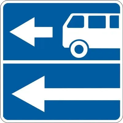 Дорожній знак 5.10.4 "Виїзд на дорогу із смугою для руху маршрутних транспортних засобів" застосовується для позначення виїзду на дорогу, де рух транспортних засобів, що рухаються встановленими маршрутами, здійснюється спеціально виділеною смугою попутно загальному потоку.