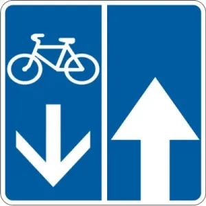 Дорожній знак 5.94.1 "Дорога із зустрічною велосипедною смугою" позначає дорогу, на якій по спеціально виділеній і відокремленій розміткою смузі, організовано рух велосипедистів у зустрічному до загального потоку транспортних засобів напрямку.