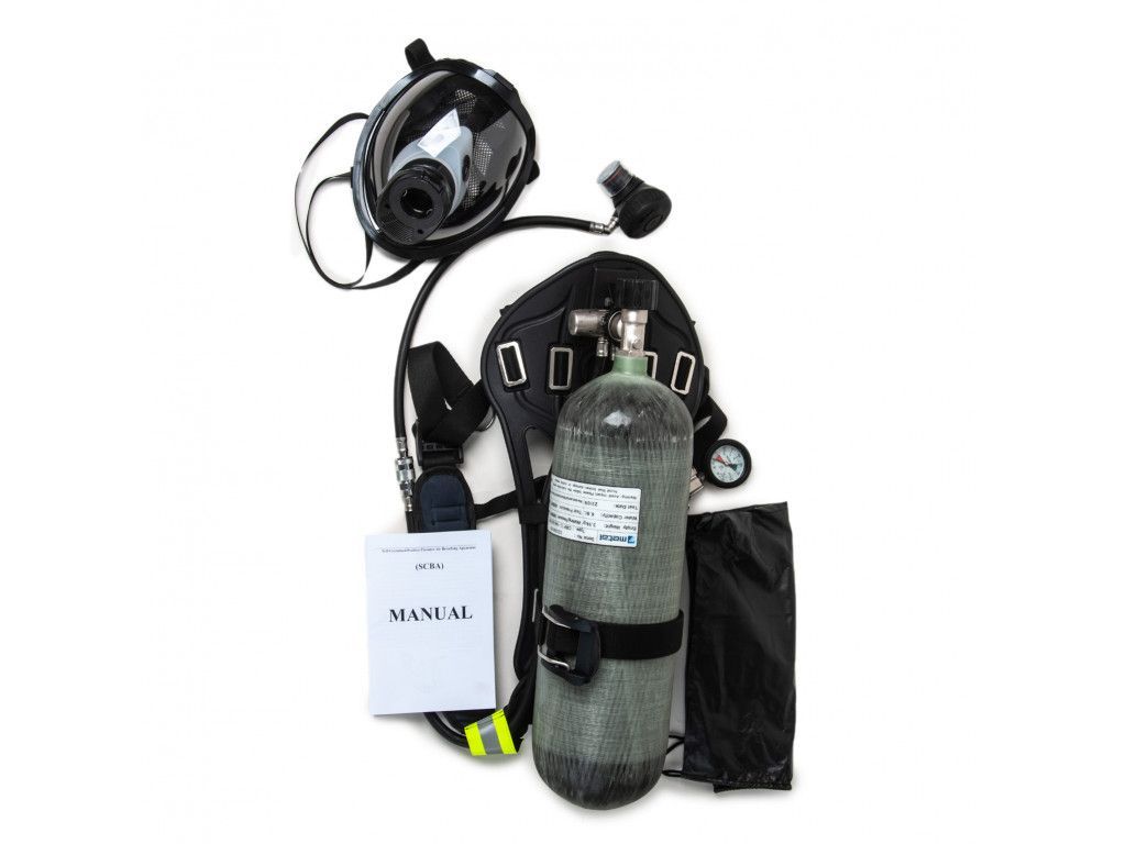 Дихальний апарат цей пристрій, призначений для забезпечення дихання в умовах, де якість повітря може бути небезпечною Виробник: SCBA Країна виробник: Китай Порожня вага: 3,9 кг Емкість води: 6,8 Дата випробувань: 23/08 Зміст: Повітря Цил. Різьблення: M18x1,5 Термін служби: 15 лет Стандарт: EN 12245 Серійний номер: C23234083 Тип: CRI' III-144-6,8-30-T Рабочий тиск: 300 бар Тестовий попередній тест, звичайно: 450 бар Повторне тестування, період 1: Максимум <5 років. Попередження: уникайте ударів. Наслідуйте інструкції, якщо виявлено ушкодження волокна, ушкодження або видиму подряпину. SCBA є автономним дихальним апаратом відкритого типу, працюючим на стислому повітрі. Автономний дихальний апарат спеціально розроблений в якості автономного дихального апарату для морської/промислової пожежогасінні, але також підходить для забезпечення захисту органів дихання у будь-якому середовищі. Цей дихальний апарат складається із задньої панелі, ременя безпеки і пневматичної системи, що містить редуктор зі вбудованим з'єднувачем балона, манометр, свисток і регульований клапан. Його можна конфігурувати різними способами з використанням поодиноких циліндрів різного розміру і вибором кевларовой лицьової маски з сіткою для голови.