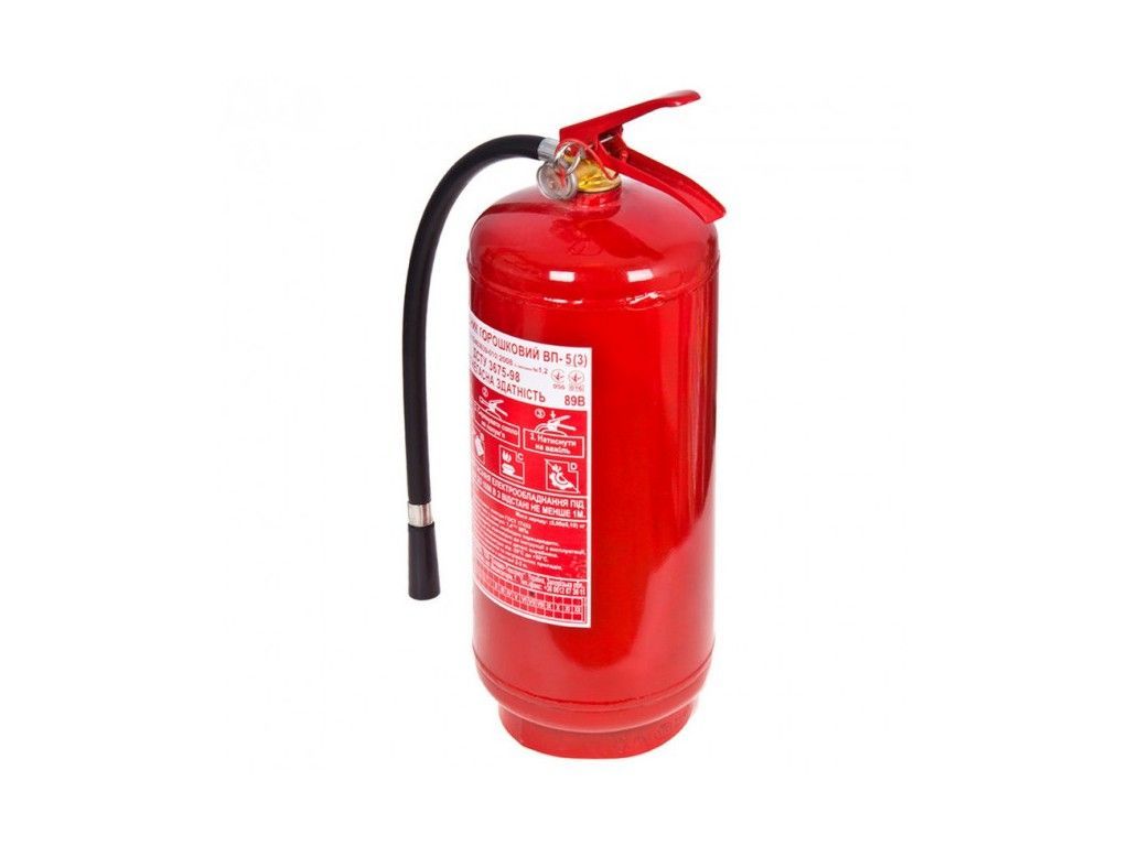 Порошковий вогнегасник (ОП-5) ВП-5 Тип вогнегасної речовини – Порошок пожежогасіння Місткість корпусу, л —6,9+0,2 Маса вогнегасного порошку, кг — 5±0,1 Тривалість спрацьовування — Не більше 5 с. Маса вогнегасника повна, кг, не більше — 8,2 Діапазон робочих температур, °С — від -20°С до +50°С Тривалість вивільнення вогнегасної речовини, с, не менше – 9 Габаритні розміри, мм, не більше: Ширина — 176 Зріст — 420 Термін служби вогнегасника - 10 років Порошкові вогнегасники застосовуються як основний засіб гасіння пожеж класу А (тверді речовини), В (рідкі речовини), С (газоподібні речовини) і електроустановок напругою до 1000 В. Вогнегасники не призначені для гасіння пожеж лужних і лужноземельних металів та інших матеріалів, горіння яких може відбуватися без доступу повітря.