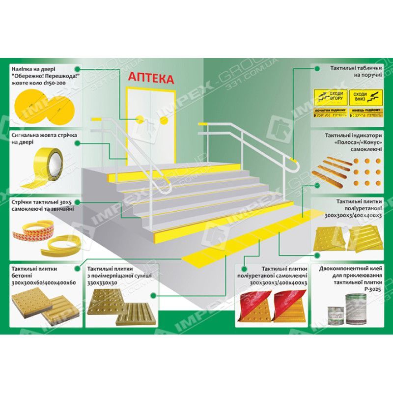 Забезпечення безпеки. Головною метою використання попереджувальної смуги є підвищення безпеки на сходах. Завдяки яскравому кольору та контрастному дизайну, вона допомагає привернути увагу людей, зменшуючи ризик падінь та травм.