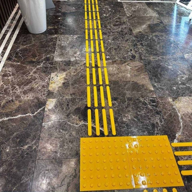 Поліуретанова тактильна плитка дуже зносостійка, що дозволяє застосовувати її не тільки всередині приміщення, а й зовні.