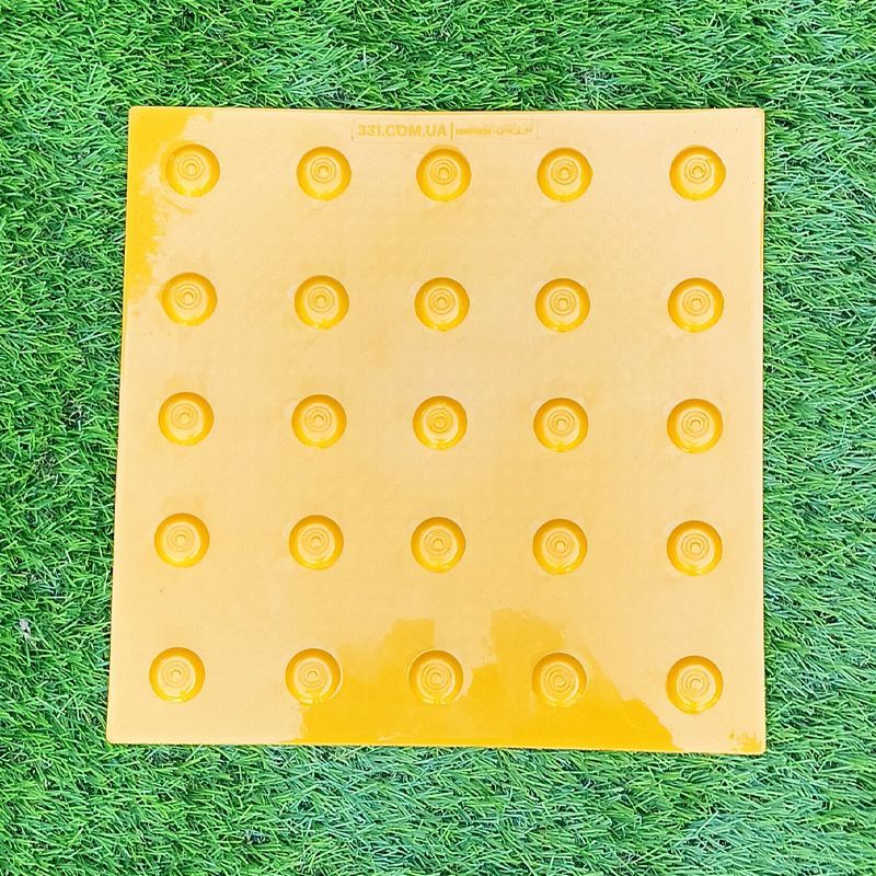 Основне призначення даної плитки – допомога людям із порушеннями зору. Завдяки своєму яскравому жовтому забарвленню та опуклим елементам у вигляді конусів, плитка легко сприймається як візуально, так і на дотик. Її рельєфна поверхня забезпечує тактильний сигнал під час ходьби з використанням тростини чи взуття, дозволяючи заздалегідь розпізнати перешкоду.