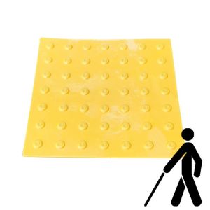 Тактильна поліуретанова плитка "Конус" - це спеціалізований виріб, призначений для забезпечення доступності міського середовища для людей з обмеженими можливостями зору. Яскраво-жовтий колір і опукла фактура у вигляді конусів роблять її помітною і відчутною, що допомагає людям з вадами зору орієнтуватися в просторі.