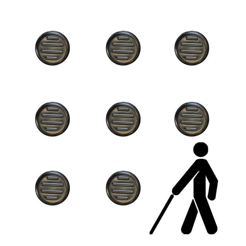 Тактильний індикатор "Конус" самоклеючий Ø25 мм — це сучасний елемент інфраструктури, створений для покращення орієнтації у просторі людей з порушеннями зору. Індикатор виготовлений у вигляді окремих круглих тактильних елементів діаметром 25 мм з рельєфною конусоподібною поверхнею. Завдяки самоклеючій основі, цей виріб легко монтується на будь-які рівні поверхні, такі як бетон, плитка, метал або дерево. Компактний розмір і лаконічний дизайн дозволяють використовувати індикатори для створення попереджувальних зон або напрямних шляхів, які органічно вписуються у будь-який архітектурний стиль.