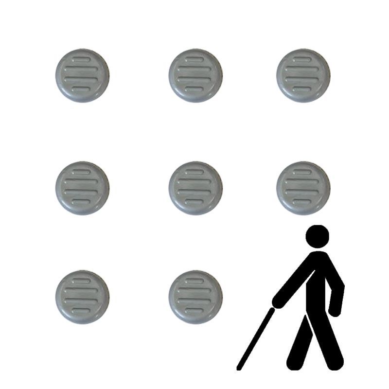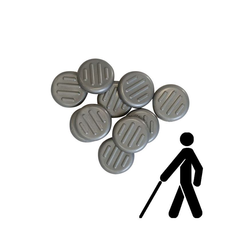 Тактильний індикатор "Конус" самоклеючий Ø25 мм — це сучасний елемент інфраструктури, створений для покращення орієнтації у просторі людей з порушеннями зору. Індикатор виготовлений у вигляді окремих круглих тактильних елементів діаметром 25 мм з рельєфною конусоподібною поверхнею. Завдяки самоклеючій основі, цей виріб легко монтується на будь-які рівні поверхні, такі як бетон, плитка, метал або дерево. Компактний розмір і лаконічний дизайн дозволяють використовувати індикатори для створення попереджувальних зон або напрямних шляхів, які органічно вписуються у будь-який архітектурний стиль.