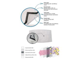 Цей фільтр може використовуватися в різних масках, включаючи пылезащитные,медичні або протигази, забезпечуючи додаткову міру захисту для дихальних шляхів 1. Матеріал: ПП антиадгезивна тканина + плавиться видувна тканина + тканина з активованим вугіллям 2. Застосування: протисахисні, протипилові, протигазові, антибактеріальні, проти-ПМ2.5 алергія, дим, забруднення, зола, пилок; 3. Сфера застосування: протипилові маски, маски для самостійного використання, салони краси, маски для зоомагазинів, заводські маски, маски для харчової промисловості, маски для очищення навколишнього середовища та інший захисний пил. 4. Фільтр-маска забезпечує комфортний захист людей. Рекомендується замінювати літуни щотижня використання для кращого ефекту. 5. Підходить для PM2.5 тип маски для обличчя для типу маски PM2.5. Функція фільтра: 1. Перший шар: тканина спанбонду, фільтр мікронного пилу 2. Другий шар: для фільтрації промислових забруднювачів, автомобільних вихлопних газів, алергії на пилок пасивного диму 3. Третій шар: тканина з активованим вугіллям, функція фільтрації пилу меншого розміру та меншого розміру мікрона 4. Четвертий шар: щільність фільтра, матеріал меншого розміру 5. П'ятий шар: тканина спанбонду, фільтрує всілякі шкідливі речовини; 6. Застосування: Лікарня, вихід, веб-сайт, туризм, холод, робочі майстерні, ферми, димна погода, холод та тепло Поради: 1. Підключається фільтр не можна чистити, на заміну А рекомендується 1-2 тижні; 2, Фільтруюче масло на плівці або з липкими плямами осаду більше, будь ласка, замініть фільтр 3, Повітря не гладке, дихання утруднене або спляче, носити не рекомендується 4, 2 тижні наступна ємність легені дитини низька, не рекомендується Розмір: 12.5* 8см/4.92''x 3.14''