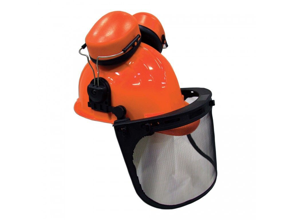 Шлемо захисний з щіткою і навушниками це спеціальне захисне устаткування, призначене для забезпечення безпеки голови, слуху Захисний шолом з щіткою і навушниками - колір комплекту – помаранчевий; - шолом надійно утримується на голові під час роботи, нахилів та інших рухів головою і тілом; - матеріал щита – металева сітка з обробкою з плацдармом. - захисний щиток швидко вводиться в робоче положення і знімається з нього, захищає обличчя і очі від зовнішніх впливів; - При використанні захисного щитка у раба є охолоджувач, який не псується при диханні працівника; - Швидко вставляються в робоче положення і виходять з нього протишумові навушники, призначені для захисту слухових організацій від впливу високочастотного виробничого шуму. - Кріплення навушників надійне, довговічне.