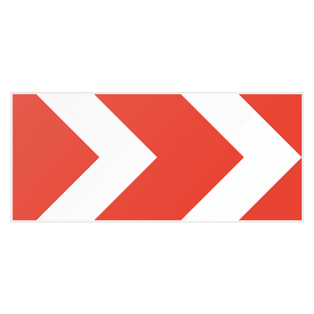 Знак 1.4.4 – прямокутний червоний попереджувальний знак з білими смугами, який повідомляє водіїв про майбутній поворот праворуч або зміну напрямку руху. Використовується на перехрестях, звуженнях та інших ділянках дороги, де потрібна увага та підготовка до маневру. Дотримання цього знака допомагає забезпечити безпечний рух і знизити ризик аварій.