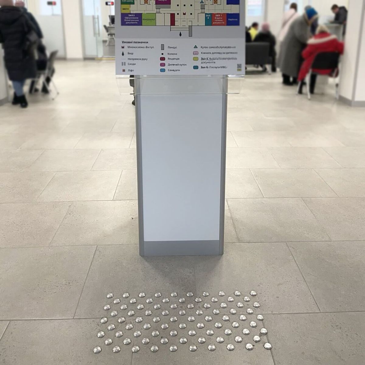 Тактильні індикатори використовуються для розмітки шляхів для незрячих. Вони допомагають орієнтуватися у приміщеннях і на вулиці, а також визначати небезпечні ділянки. Алюмінієві індикатори мають компактний розмір, не кородують, мають протиковзку насічку для безпеки, і легко монтується за допомогою трафарету.