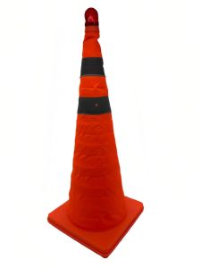Цей дорожній складаний конус дозволяє швидко й ефективно позначити місце ДТП, ремонтні роботи чи інші небезпечні зони. Завдяки компактності та зносостійкості — це надійний інструмент для безпеки на дорозі.