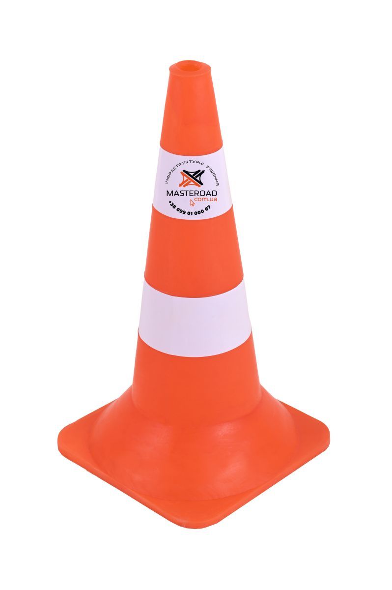 Конус дорожній пластиковий Н-60 см з 2 білими смужками – 60 MasteRoad