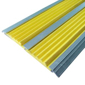 Антиковзний поріг з подвійною жовтою гумовою вставкою 1 м. алюмінієвий – це практичне рішення для забезпечення безпеки на сходах, переходах і порогах. Завдяки використанню алюмінію та гумової вставки, цей поріг не тільки запобігає ковзанню, а й додає естетичний вигляд будь-якому інтер'єру чи зовнішньому середовищу.