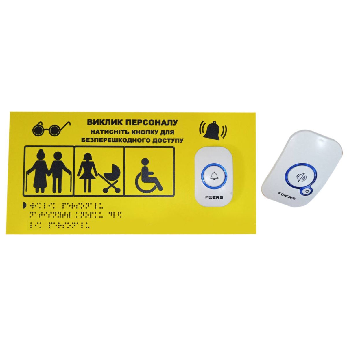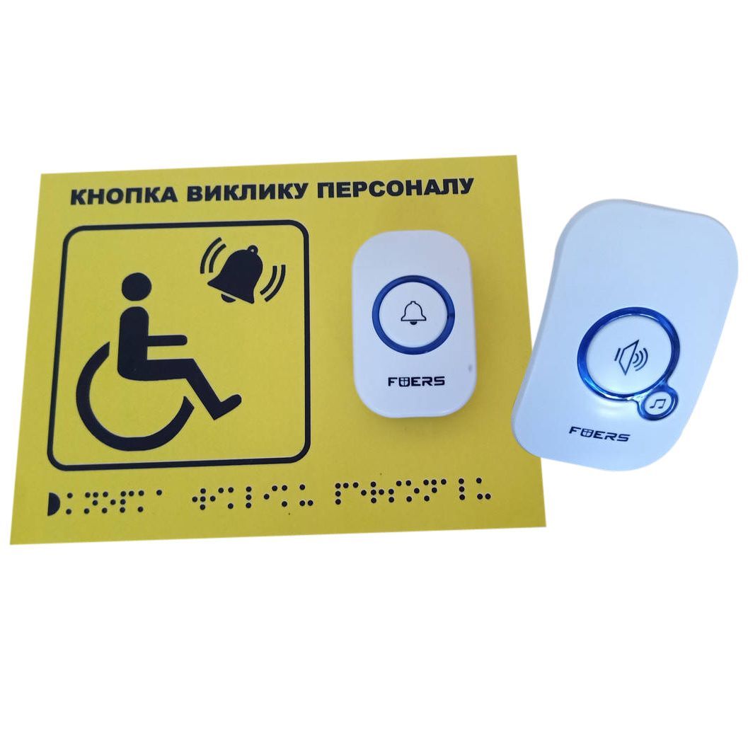 Бездротова система виклику персоналу – це сучасне рішення для організації ефективного сервісу та доступності в громадських місцях. Комплект складається з таблички, кнопки виклику з батарейкою та приймача.
