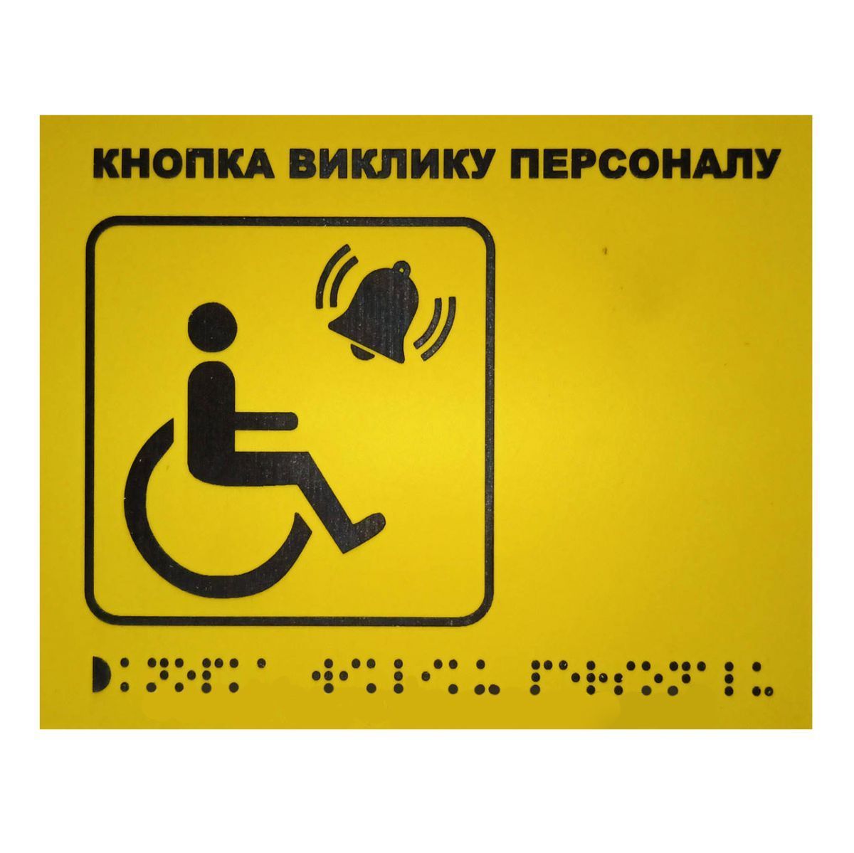 Інформація подається плоскодрукованим (об'ємним) текстом та дублюється шрифтом Брайля.