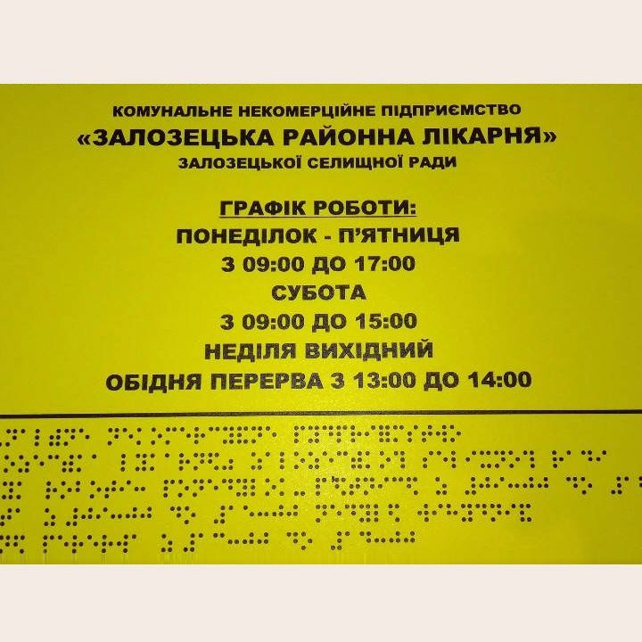 Виготовлення режимних тактильних табличок шрифтом Брайля (для незрячих) за ДБН та Дсту