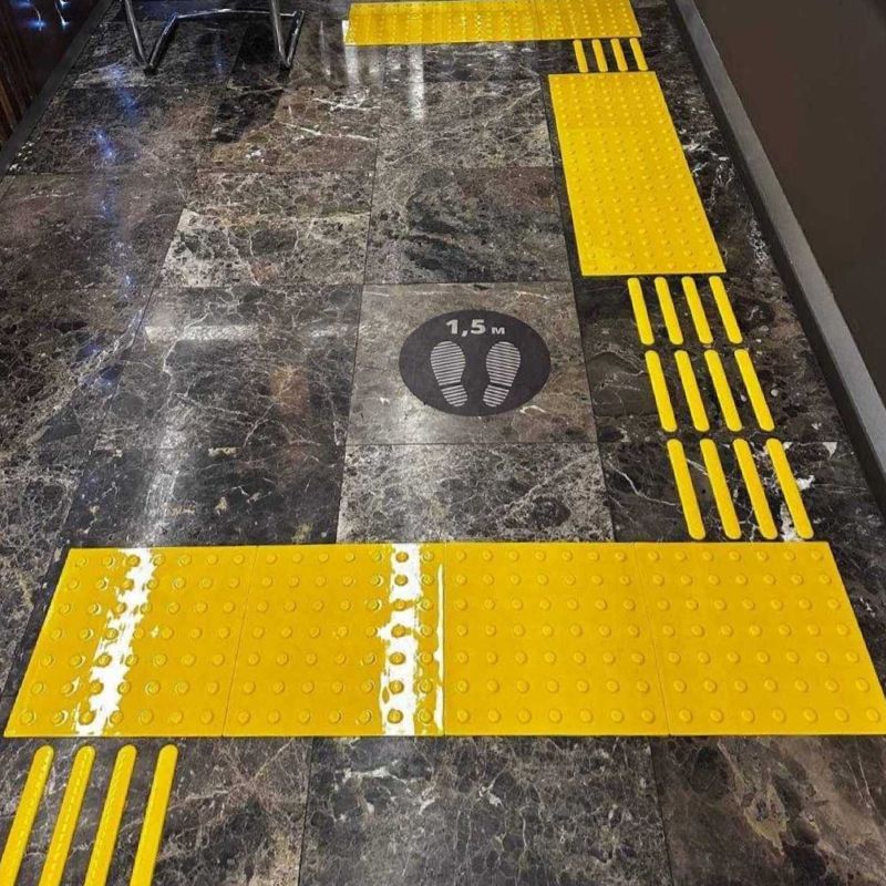 Поліуретанова тактильна плитка дуже зносостійка, що дозволяє застосовувати її не тільки всередині приміщення, а й зовні.
