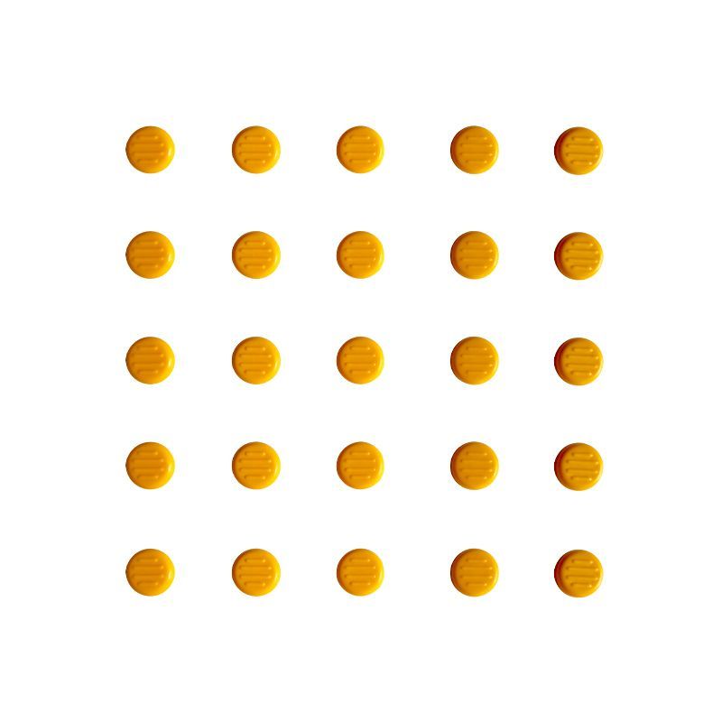 Тактильний індикатор "Конус" самоклеючий Ø25 мм — це сучасний елемент інфраструктури, створений для покращення орієнтації у просторі людей з порушеннями зору. Індикатор виготовлений у вигляді окремих круглих тактильних елементів діаметром 25 мм з рельєфною конусоподібною поверхнею. Завдяки самоклеючій основі, цей виріб легко монтується на будь-які рівні поверхні, такі як бетон, плитка, метал або дерево. Компактний розмір і лаконічний дизайн дозволяють використовувати індикатори для створення попереджувальних зон або напрямних шляхів, які органічно вписуються у будь-який архітектурний стиль.