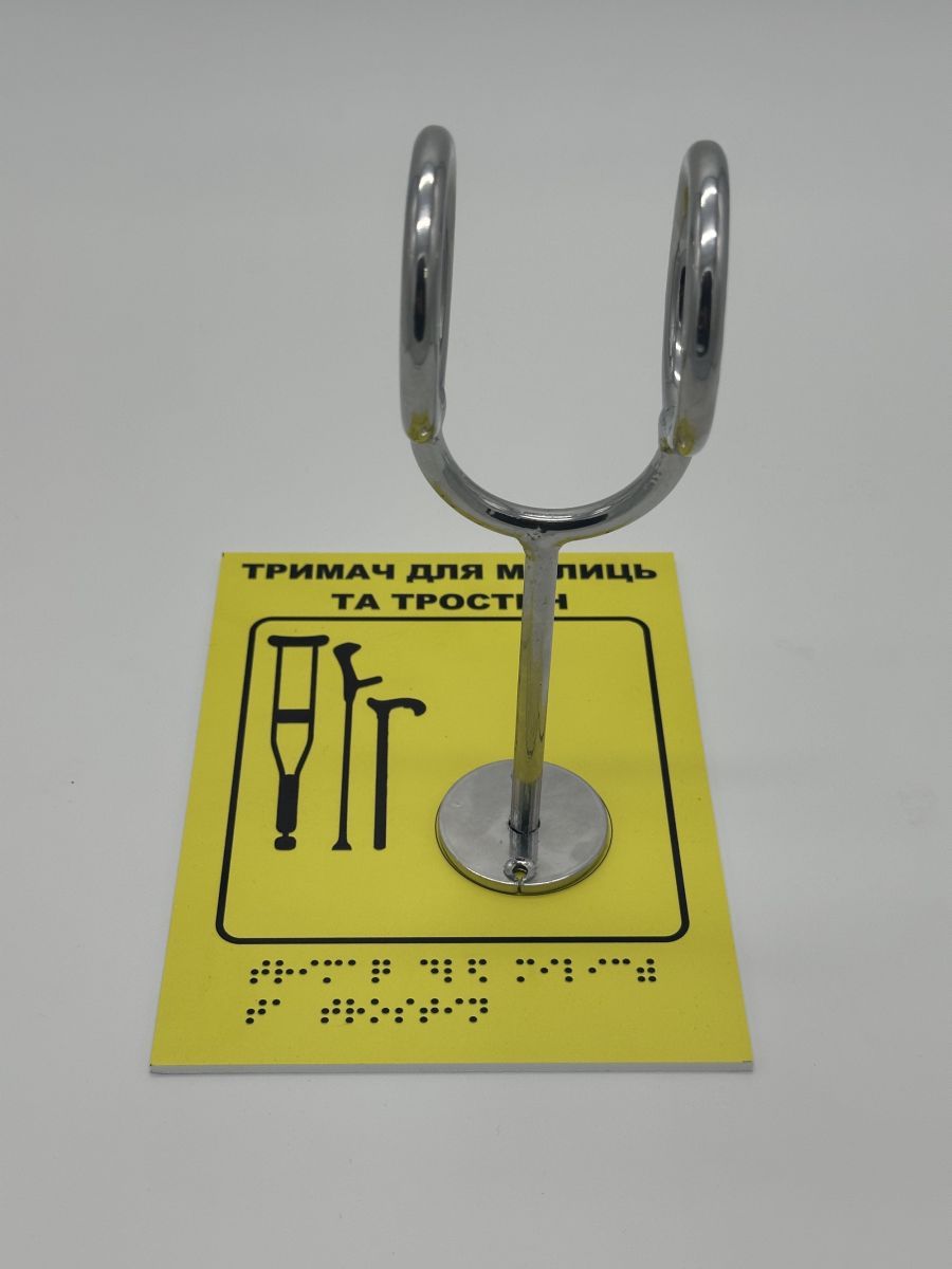 Комплект "Тримач для милиць + Тактильна табличка для слабозорих та незрячих"
