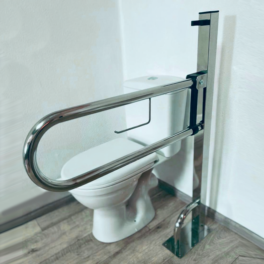 Цей поручень посилений завдяки додатковій опорі і зазвичай використовується поруч з унітазом або вмивальником, коли кріплення до стіни не бажане або неможливе. Конструкція, що відкидається, не заважає переміщенню, прибиранню та використанню умивальника або унітазу іншим членами сім'ї.