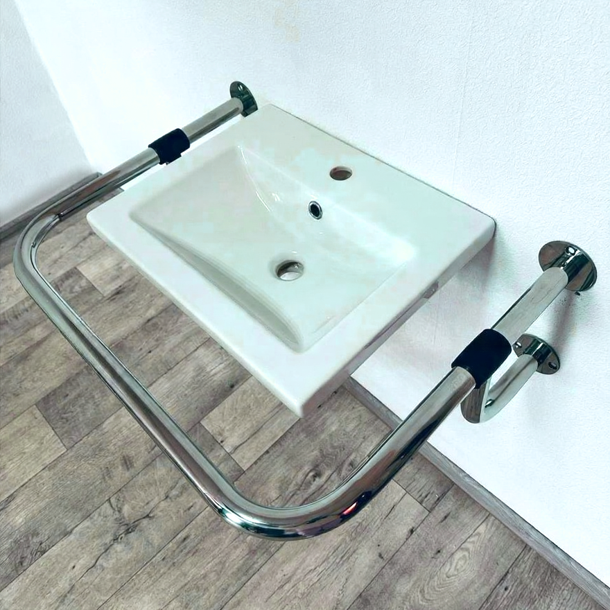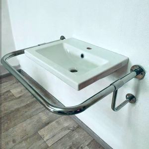 Даний поручень призначений для монтажу поруч із раковиною. Забезпечує додаткову точку опори, щоб у процесі вмивання особа з обмеженими можливостями не спиралася на саму раковину.