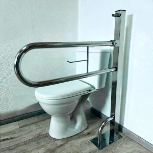 Даний поручень посилений завдяки додатковій опорі і зазвичай використовується поруч з унітазом або умивальником, коли кріплення до стіни не бажане або неможливе. Конструкція, що відкидається, не заважає переміщенню, прибиранню та використанню умивальника або унітазу іншим членами сім'ї.