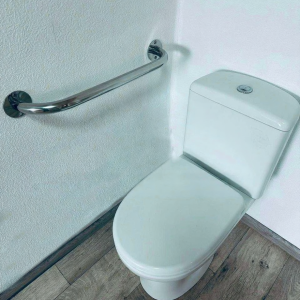 Поручень прямий для маломобільних груп населення (МГН) — спеціалізований виріб, призначений для забезпечення додаткової опори та безпеки людям з обмеженими можливостями пересування. Може встановлюватись горизонтально або вертикально, залежно від місця застосування. ПРИЗНАЧЕННЯ: допомога при вставанні, пересуванні, утриманні рівноваги. Найчастіше використовується у санітарно-гігієнічних приміщеннях, а також у місцях загального користування: поліклініки, школи, торгові центри, вокзали, житлові будинки тощо.