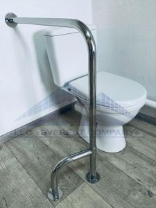 Поручень стаціонарний підлогово-настінний посилений для унітазу забезпечує додаткову точку опори. Такий поручень забезпечує високий ступінь надійності та особливо рекомендується для людей із зайвою вагою.