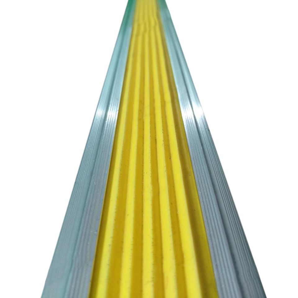 Поріг алюмінієвий з жовтою гумовою вставкою – це надійне та ефективне рішення для забезпечення безпеки в зонах з підвищеним ризиком ковзання. Він ідеально підходить для встановлення на сходах, пандусах, у громадських місцях або в будинках, де важливо знизити ймовірність травм через слизькі поверхні.
