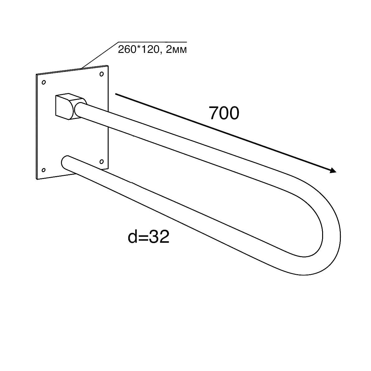 Поручень пристінний відкидний 32 мм × 700 мм — зручний елемент санітарного обладнання для облаштування туалетних кімнат, адаптованих під потреби людей з інвалідністю та маломобільних груп населення.