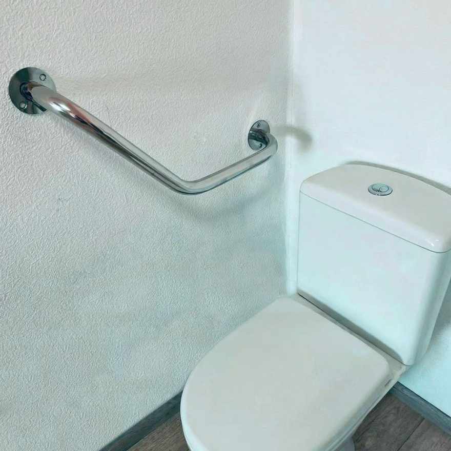 Кутовий пристінний поручень призначений для використання в санвузлі, ванній кімнаті та інших приміщеннях, де хворим та ослабленим людям необхідна додаткова опора під час підйому та переміщення. Кутова форма поручня сприяє кращому захопленню.