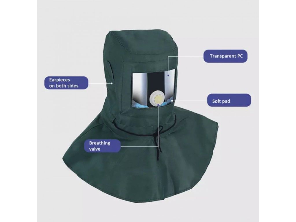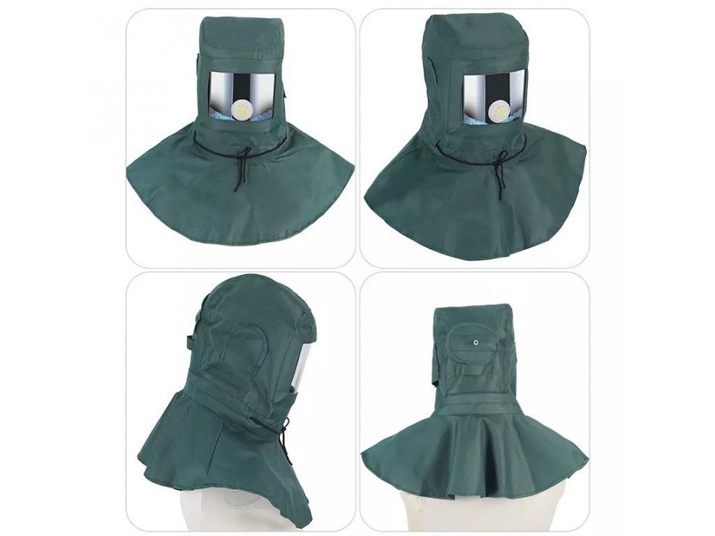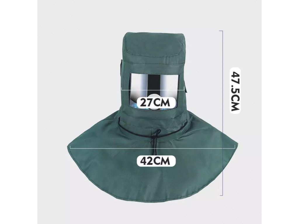 Назва продукту: Промисловий захисний чохол Матеріал: полотно + лінзи з полікарбонату Колір: Зелений Розмір: Довжина шаль: близько 53см, розмір поля зору: 15*9. 5см, розмір об'єктива: близько 20*15см Використання: Підходить для робочих середовищ, таких як шліфування, фарбування, різання каменю, роботи із захисту від пилу, упаковка цементу, різання каменю тощо. Переваги: антипромисловий пил, проти бризок, протишоковий, антипіщаний, простий в носінні, всебічний захист на 360 градусів