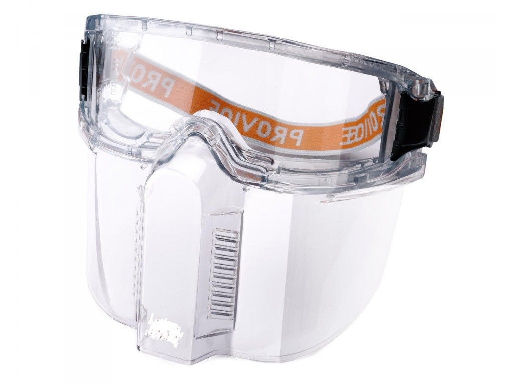 Окуляри Provid з щитком, оснащені лінзами з не потіючого ПК (поликарбонатного) скла і з антицарапинным покриттям, зазвичай призначені для захисту очей в різних сферах Захисні окуляри зі щитком, прозорі з еластичного матеріалу, з бічними вигинами і захищеними вентиляційними отворами на верхній і нижній частині напівмаски. Протитуманне покриття. Антидряпальне покриття. Окуляри призначені для захисту очей від лугів.